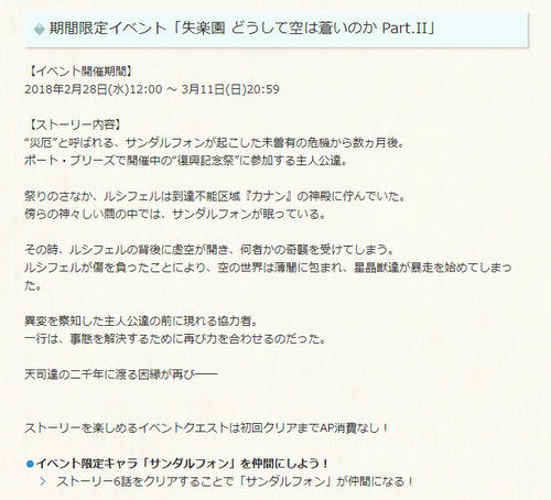 ところが、グラブルの主人公達が序章で引き起こした出来事が切っ掛けで、封印が緩み、サンダルフォンは外へ脱出した…という感じです。
