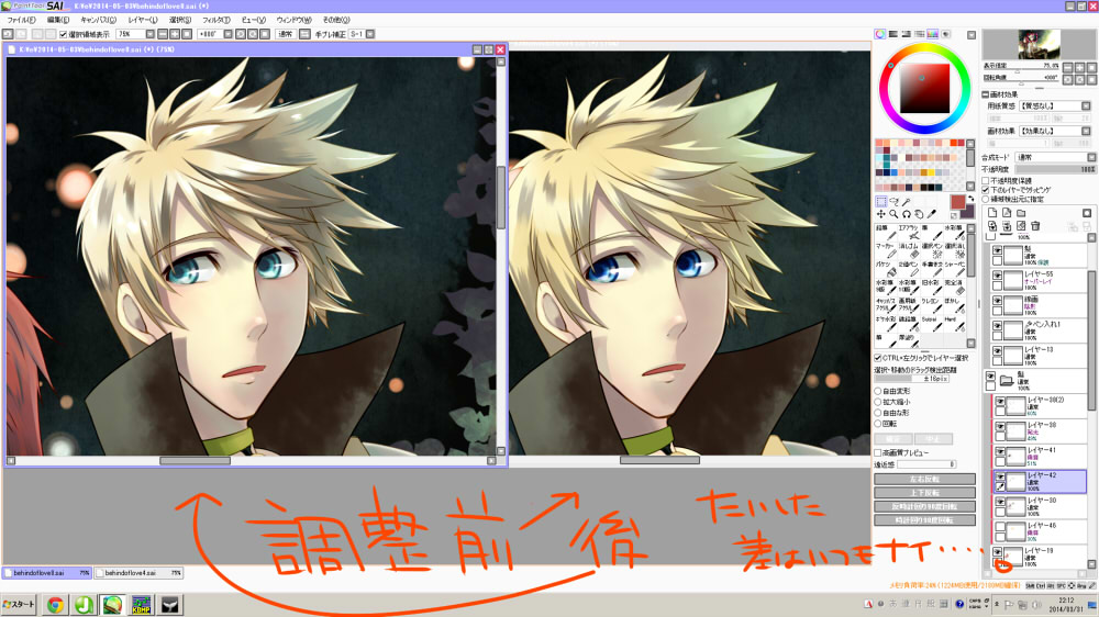 そして懺悔すると、今回の「背中あわせの向こうがわ」のデータは、口を修正かけたあとのデータに差し替えミスしてました…古いver…。まあ、い、いいか…!!orz