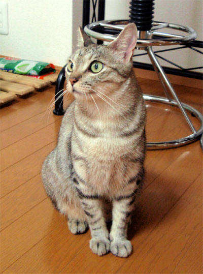 保護された経緯から、多分捨て猫じゃないかと思われますが、いつかはツンデレデレくらいの関係になってくれればいいなー。
