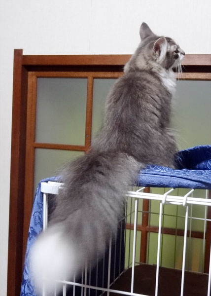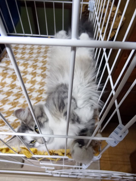 昨日まではキャットケージの1段目2段目に移動するために、金網に手をかけてよいしょよいしょとよじ登ってたんですよ…お前はサルか!と言いたくなるくらい猫らしさの欠片もありませんでしたが、無事に猫として成長していってるようで嬉しいです。
