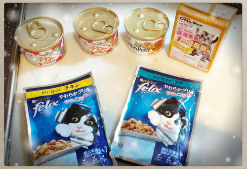 右上は、もしかしたら飲むかも…と猫ミルク。