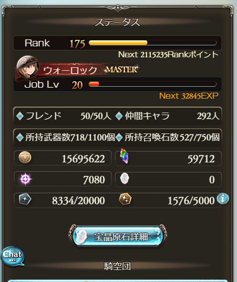 さて、一昨年10月からずっとプレイしてるグランブルーファンタジーですが、とうとうRank175に到達してカンストしました。
