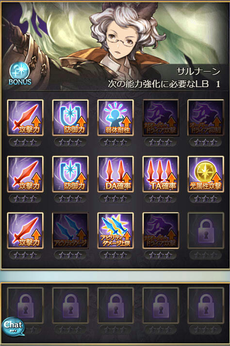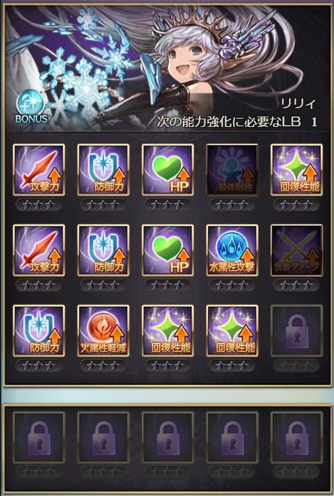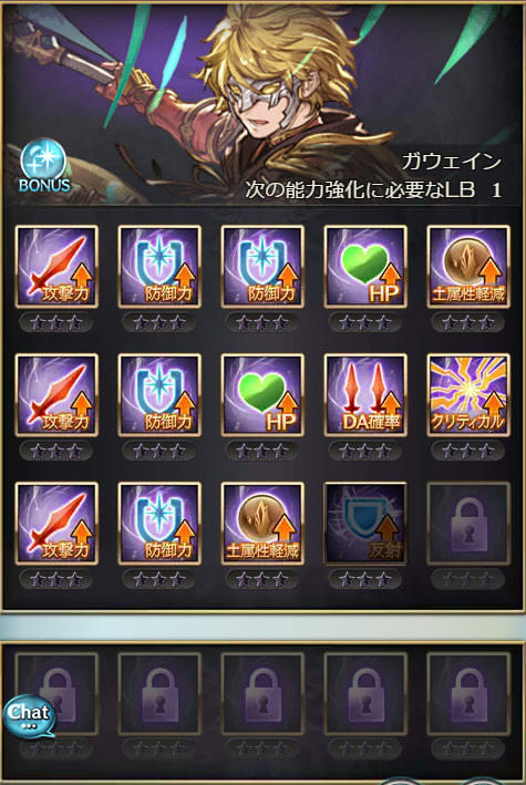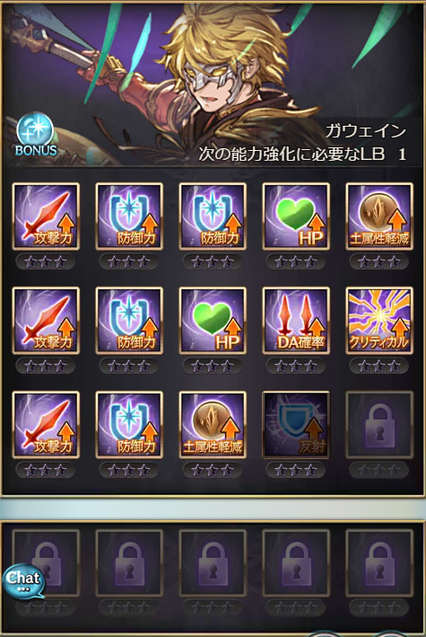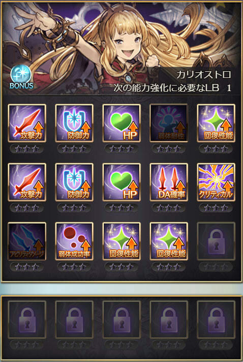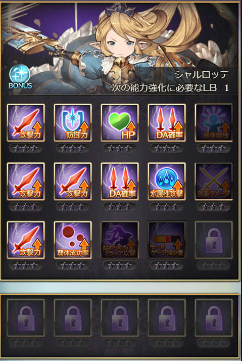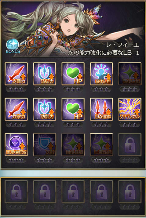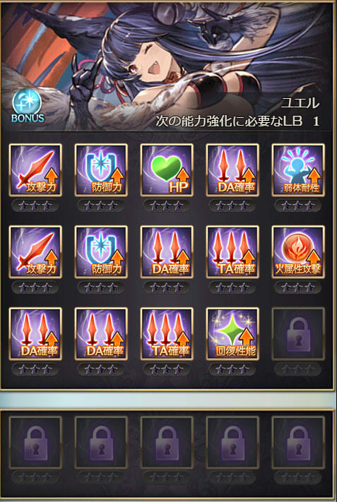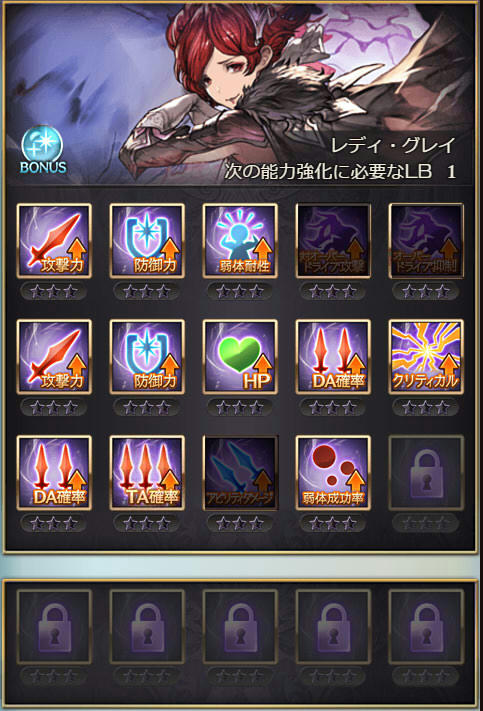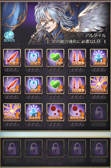 | 攻撃 | 攻撃 | 防御 | DA | クリティカル | 奥義ダメ |