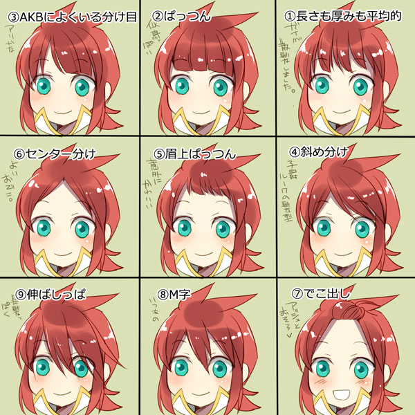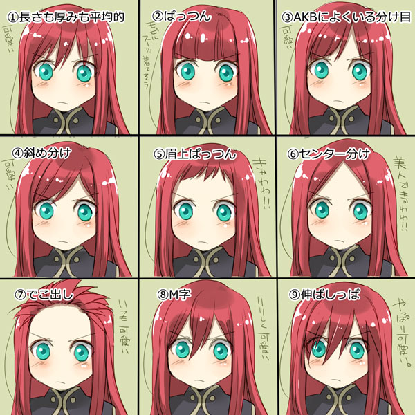 ⑧のM字は王道に可愛いし、⑦と⑨の元々の髪型もやっぱり可愛い。