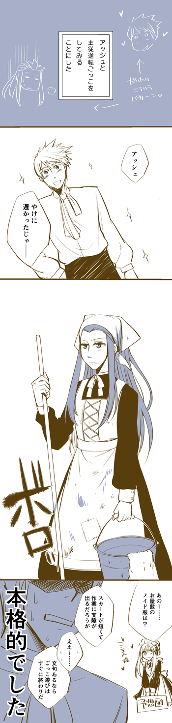 ガイとしては、あの屋敷の可愛いメイド姿を期待してたのに、アッシュは素で使い古したロングスカートのぼろぼろなエプロン着てきそう…。